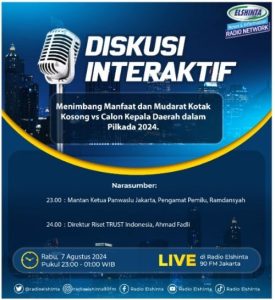 “Kalau sampai kotak kosong menang yang rugi masyarakat. Kepala Daerah akan dijabat oleh Pj. Kepala Daerah dan Pembangunan strategis tidak bisa dilaksanakan, karena kewenangan Pj Gubernur atau Walikota/Bupati sangatlah terbatas. Parpol (partai politik) juga rugi, kader mereka kan harusnya mengisi jabatan tersebut,” ujar Ramdansyah saat diskusi interaktif bertajuk Menimbang Manfaat dan Mudarat Kotak Kosong vs Calon Kepala Daerah dalam Pilkada 2024, di Radio Elshinta, Rabu malam (7/8/2024).