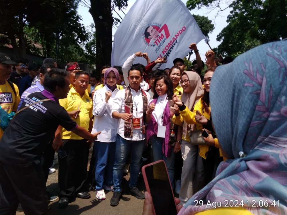 Sebelum menuju ke kendaraannya, pasangan calon Walikota dan Wakil Wali Kota Bogor 2024-2029, diminta berfoto oleh warga dan para simpatisan. Sendi maupun Melli dengan sukacita melayani permintaan foto bersama tersebut.