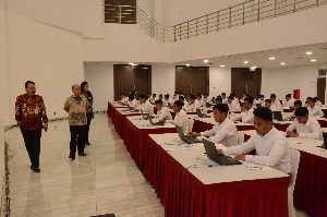 TANGERANG – Kepala Biro Sumber Daya Manusia Kementerian Hukum dan Hak Asasi Manusia (Karo SDM Kemenkumham) Supartono, dan Kepala Biro Hubungan Masyarakat (Karo Hukerma) Hantor Situmorang, memeriksa dan memantau pelaksanaan uji Psikotes bagi calon taruna-taruni (catar) Politeknik Pengayoman Indonesia (POLTEKPIN).