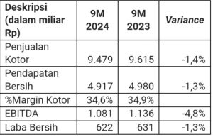 Total penjualan mencapai Rp9,48 triliun, dengan Margin Kotor tetap stabil di 34,6%. EBITDA tercatat sebesar Rp1.081 miliar, dan Manajemen kembali menegaskan target EBITDA sebesar Rp1,2 triliun hingga akhir tahun.