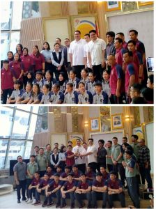 “Yang putra sudah juara, yang putri kita harap bisa juara juga,” ujar Menpora Dito, yang disambut “Juara” dari para pemain secara kompak.