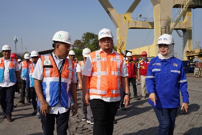 Rangkaian kegiatan dilanjutkan dengan peninjauan fasilitas dan alat bongkar muat yang sedang dalam tahap pemeliharaan di lapangan TPK 009 Area Tanjung Priok 1.