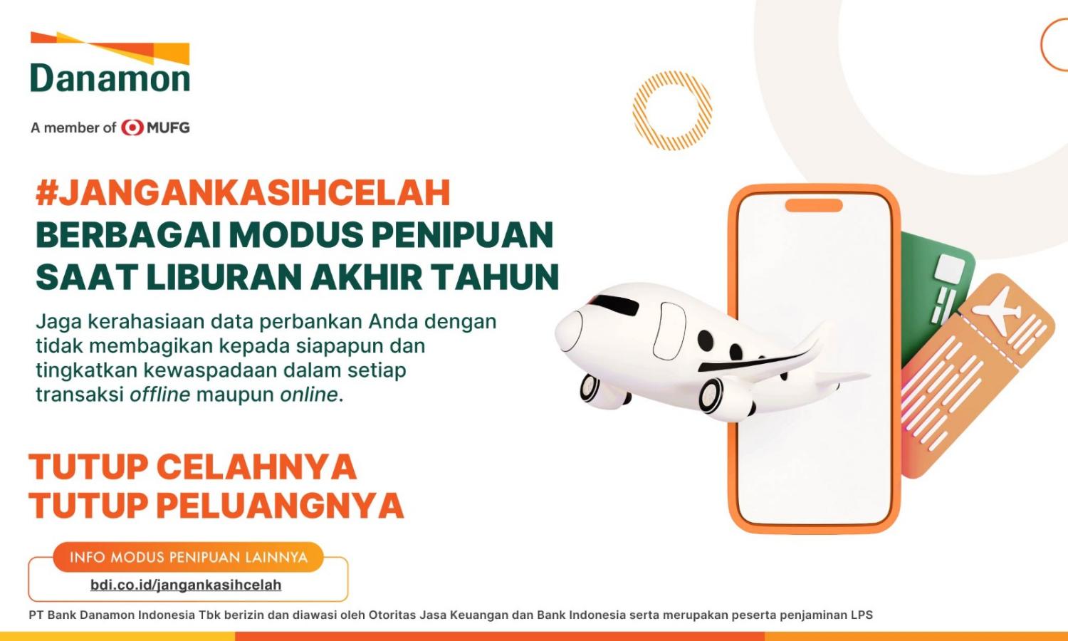 JAKARTA – Memasuki musim libur Natal 2025 dan Tahun Baru 2026, PT Bank Danamon Indonesia Tbk (“Danamon”) kembali menghimbau masyarakat untuk meningkatkan kewaspadaan terhadap berbagai bentuk penipuan atau fraud yang kerap meningkat pada periode holiday season.