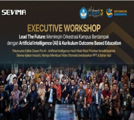 Hal tersebut disampaikannya dihadapan ratusan pimpinan perguruan tinggi dalam Executive Workshop SEVIMA bertajuk “Lead The Future: Memimpin Orkestrasi Kampus Berdampak dengan Artificial Intelligence (AI) dan Kurikulum Outcome Based Education (OBE).”