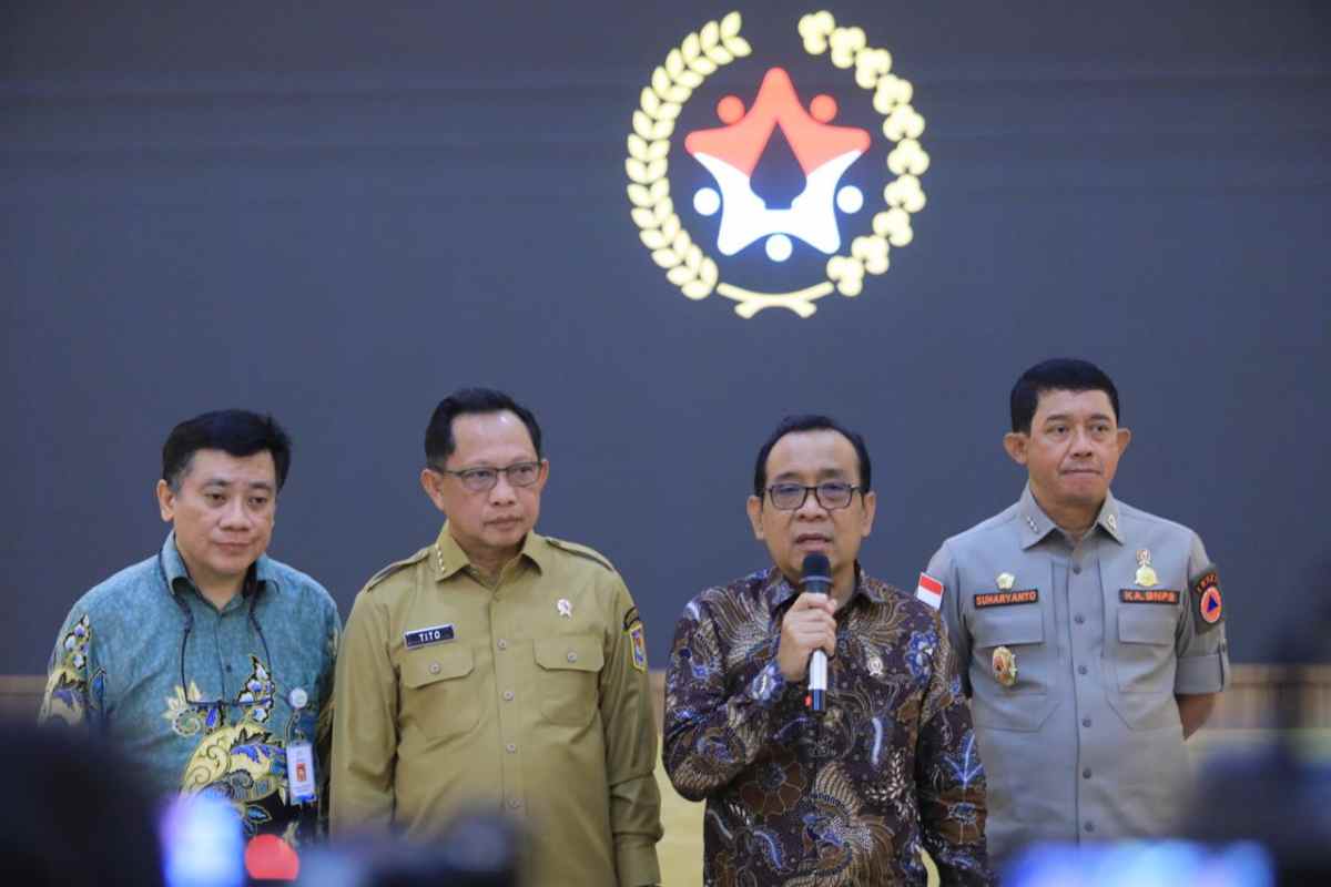 Turut hadir dalam rapat tersebut, Menteri Koordinator Bidang Pemberdayaan Masyarakat Muhaimin Iskandar, Menteri Dalam Negeri Tito Karnavian, Menteri Pekerjaan Umum Dody Hanggodo, Kepala BNPB Suharyanto, serta perwakilan kementerian dan lembaga terkait lainnya.