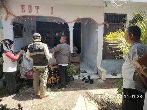 Petugas Kelurahan Bendungan Hilir, Kecamatan Tanah Abang Jakarta Pusat memberikan surat pemberitahuan dari Pemkot Administrasi Jakarta Pusat kepada keluarga Pensiunan PNS Jakarta.